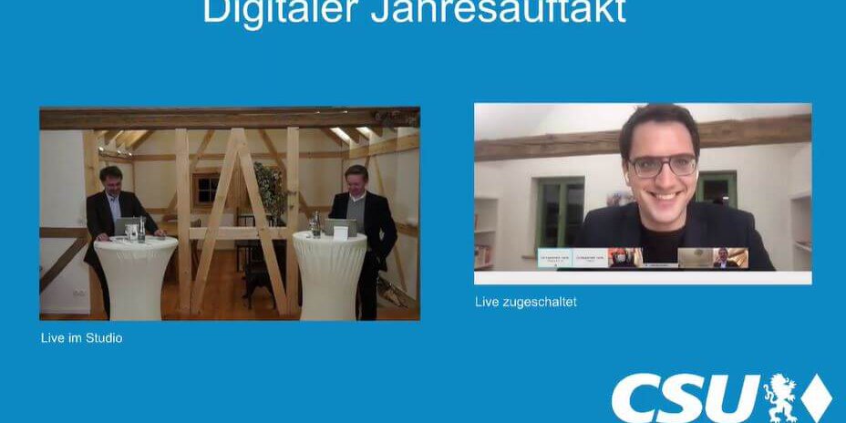 Der MU-Kreisvorsitzende Leonhard Zintl, der die Idee für diese neue Art der Veranstaltungsreihe hatte, begrüßte bei der Premiere zahlreiche Teilnehmer aus allen sechs CSU-Arbeitsgemeinschaften. Gesendet wurde aus einem kleinem Live-Studio in den Hollerhöfen auf Abstand in dem neben CSU-Kreisvorsitzende Tobias Reiß nur noch Leonhard Zintl und dessen Sohn Lukas als Kameramann anwesend waren. Der Rest der kleinen Regie, um den Digitalisierungsbeauftragen Sebastian Koch aus Waldsassen, saß wie die vielen Zuschauer zu Hause vor den Bildschirmen.